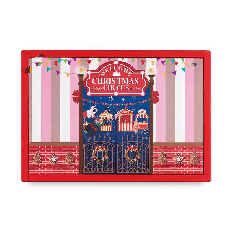音楽隊のリズムに合わせて、玉乗りをする象や火の輪をくぐるライオン、ジャグリングピエロに、手品の帽子からうさぎがひょっこり。サンタさんは踊っているのでしょうか。