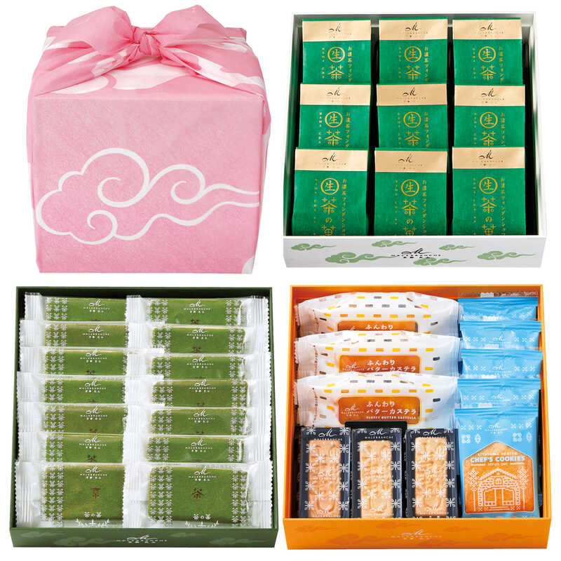 - 茶の菓×14、生茶の菓×9、北山本店シェフクッキー×5、もなかかお・ふんわりバターカステラ×各3
