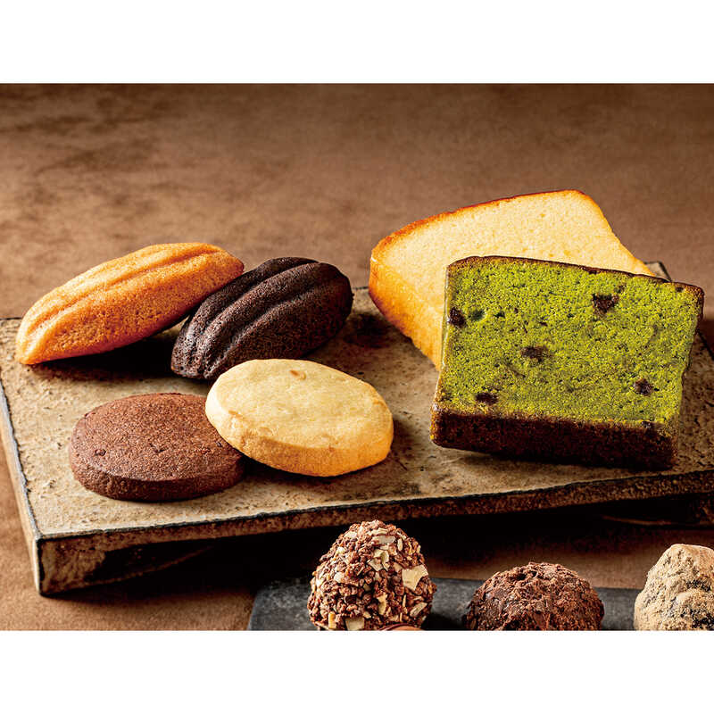 ショコラティエがベルギー産チョコレートを使用して生みだした、柔らかでしっとりとしたケークやフィナンシェなどをアソート。