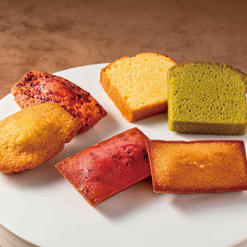 - フィナンシェ ナチュール・ケーク テベール エ ユズ・マドレーヌ ヴァニーユ×各3、フィナンシェ イスパハン・ケーク オ シトロン・マドレーヌ イスパハン×各2