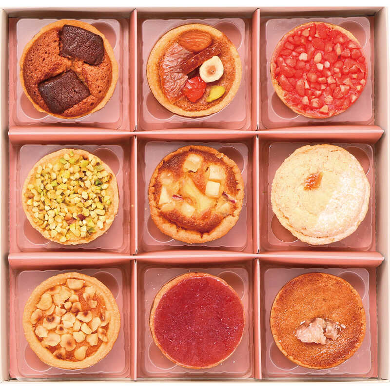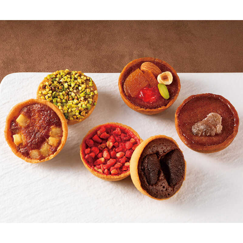 タルト生地にマドレーヌやフィナンシェなどを入れ、フルーツやナッツを合わせました。フランスの古典菓子をベースにアレンジを加えた日仏のマリアージュを。