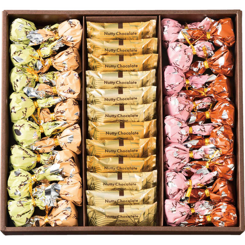 - リーフメモリー(橙・緑・桃・茶×各8)、ナッティーチョコレート(アーモンド・ヘーゼルナッツ×各6)