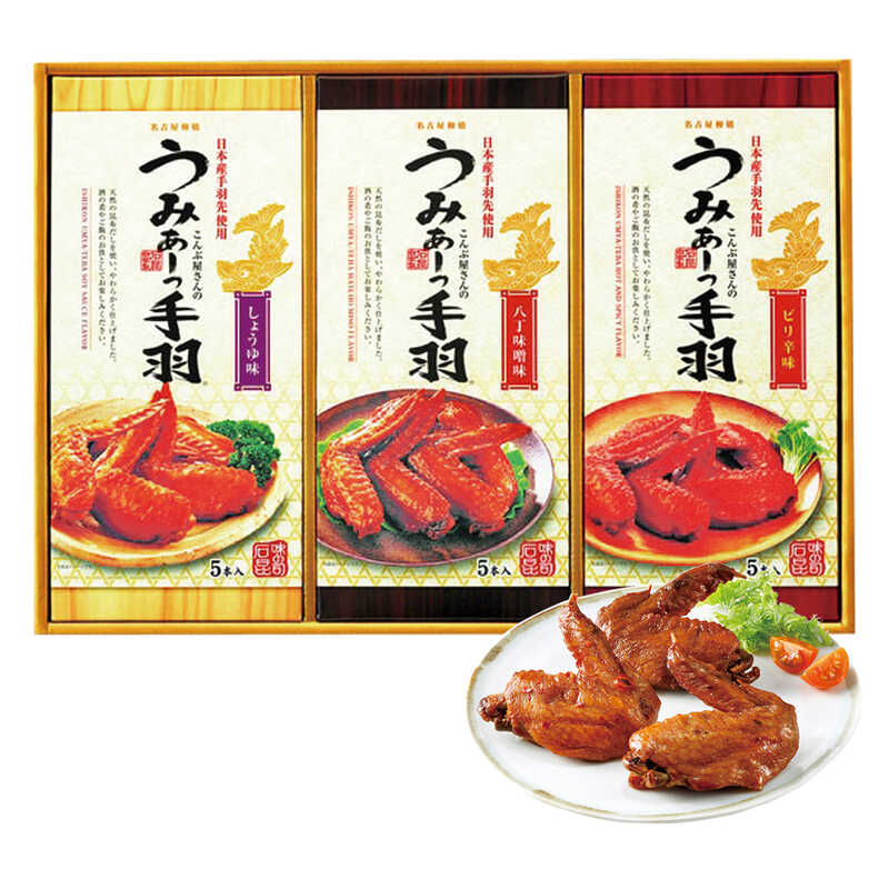 - うみぁーっ手羽(しょうゆ味・八丁みそ味・ピリ辛味(各5本入)×各1)