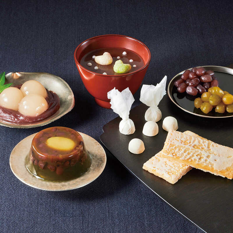 温めて召しあがるぜんざい、しるこ、くず湯やお茶菓子におすすめの小さな和菓子などさまざまな味わいをお楽しみいただけます。