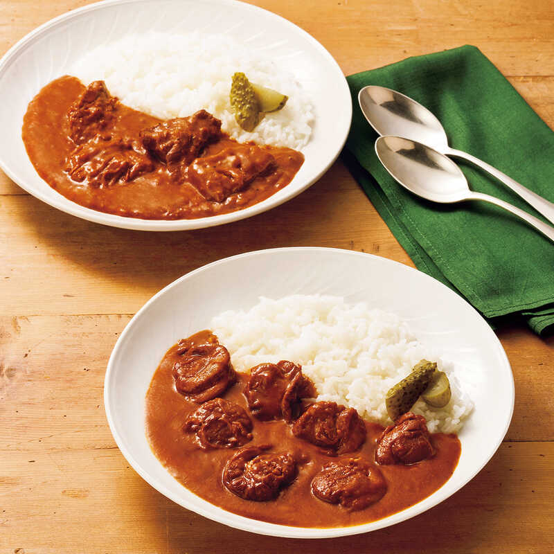厳選素材を贅沢に使った「黒毛和牛カレー」と、噴火湾の恵みを堪能できる「北海道帆立カレー」。名門の料理長が認めた芳醇な味わいを。