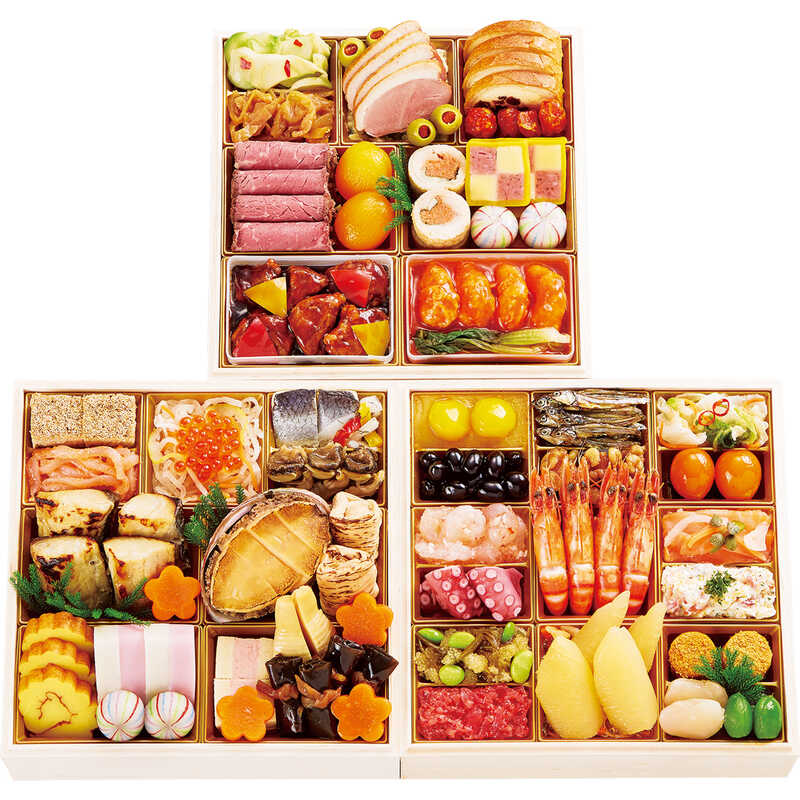 ※諸事情により献立内容、品目数、重箱サイズ、材質が多少変更になる場合もございます。あらかじめご了承ください。