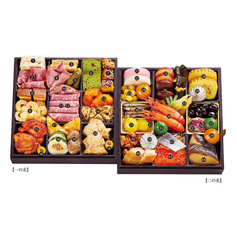 ※諸事情により献立内容、品目数、重箱サイズ、材質が多少変更になる場合もございます。あらかじめご了承ください。
