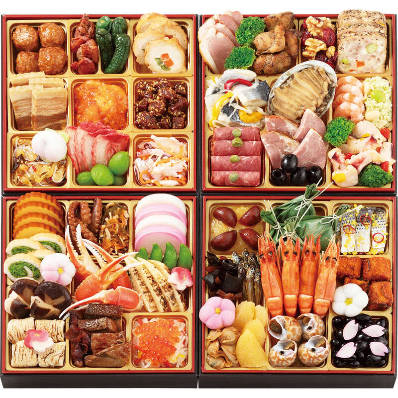 ※諸事情により献立内容、品目数、重箱サイズ、材質が多少変更になる場合もございます。あらかじめご了承ください。