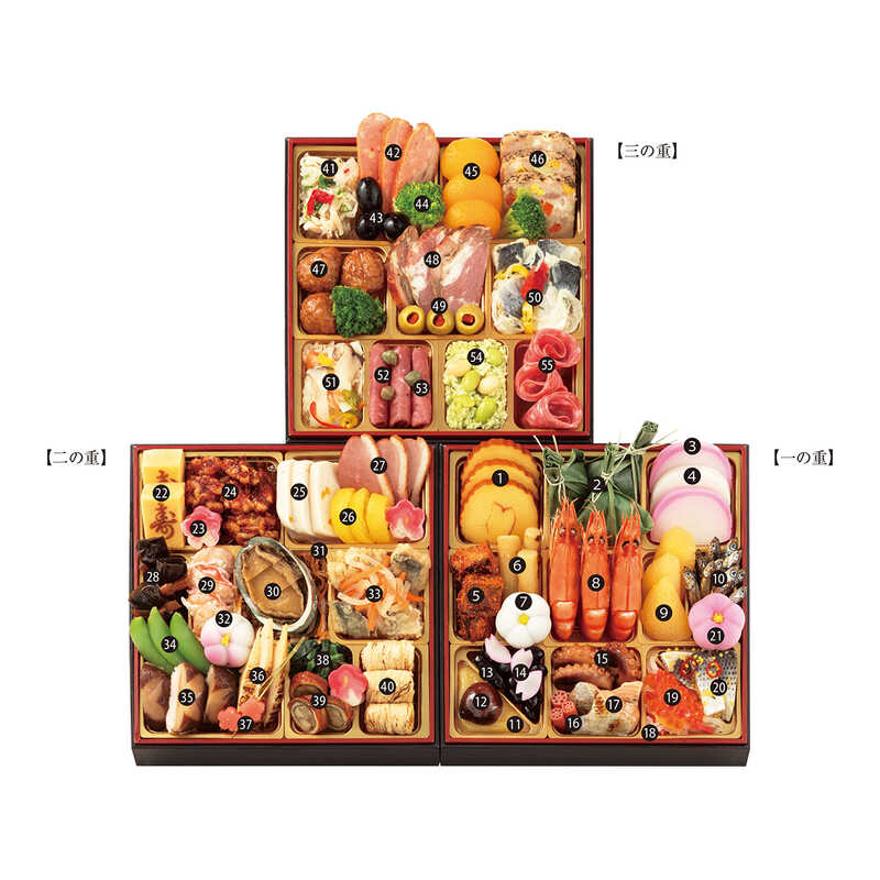 ※諸事情により献立内容、品目数、重箱サイズ、材質が多少変更になる場合もございます。あらかじめご了承ください。