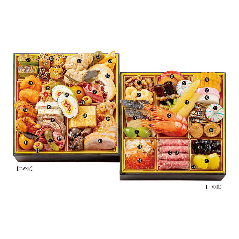 ※諸事情により献立内容、品目数、重箱サイズ、材質が多少変更になる場合もございます。あらかじめご了承ください。