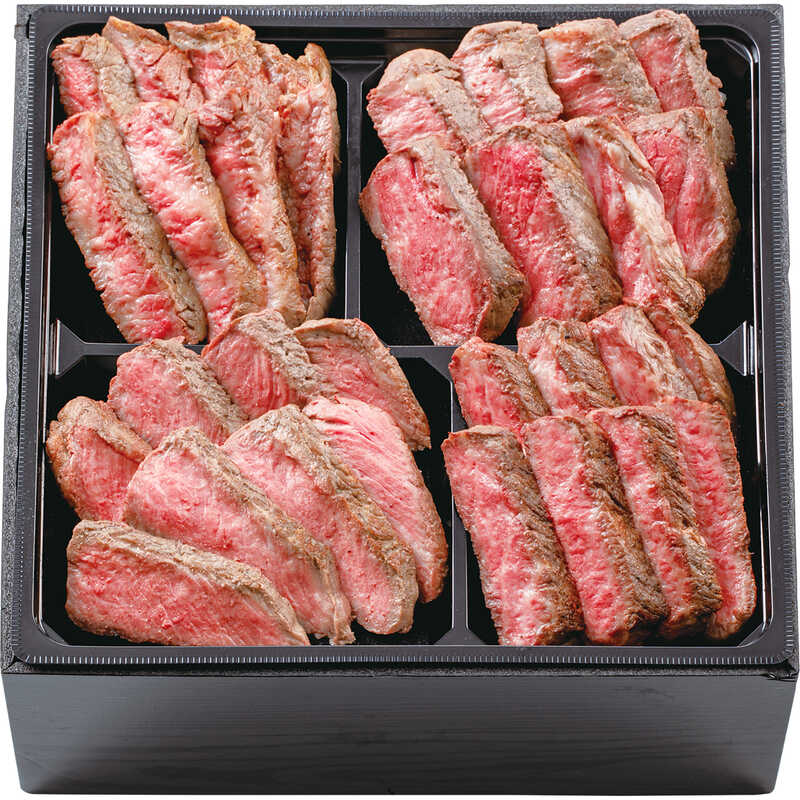 肉職人が選び抜いた近江牛の希少な部位をステーキで堪能。温められる容器でお届けします。