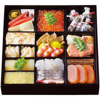 ご贈答にも最適なお一人様おせちと、日本の珍味、ご馳走を揃えた贅沢重。食べやすさを考え、深さを調整し、美しく九つの枡を設け創意工夫をしております。日本の伝統の味を伝えながら、皆様の団欒の時が豊かでありますよう願いを込めました新年の食卓を彩るおせちです。