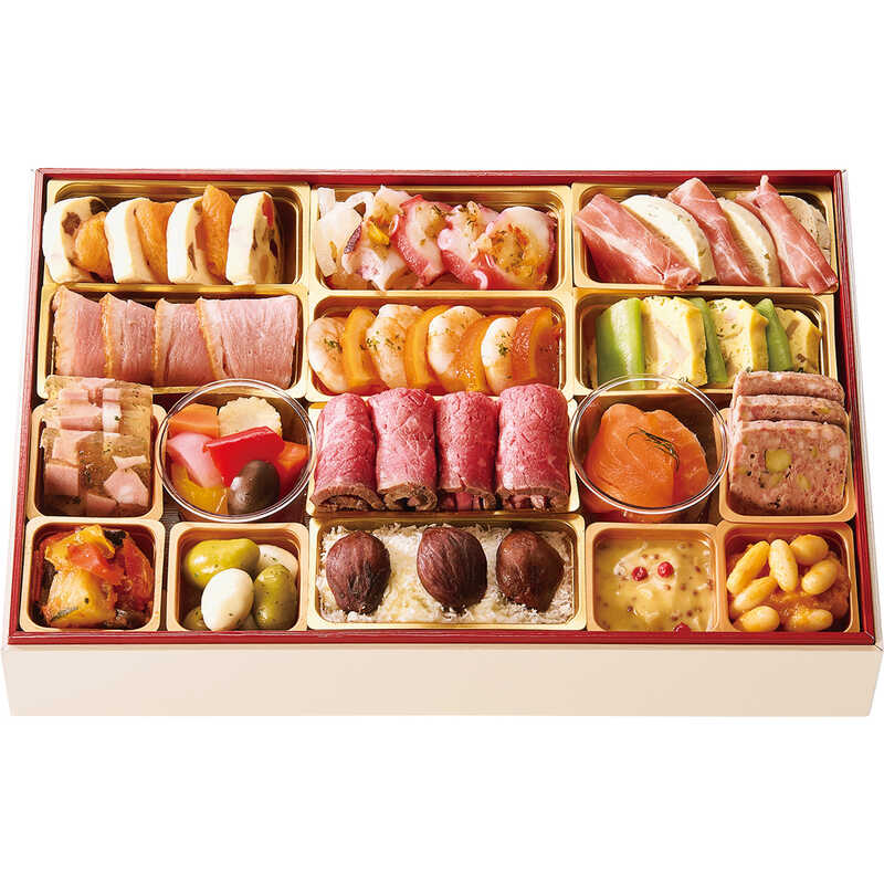 ※諸事情により献立内容、品目数、重箱サイズ、材質が多少変更になる場合もございます。あらかじめご了承ください。