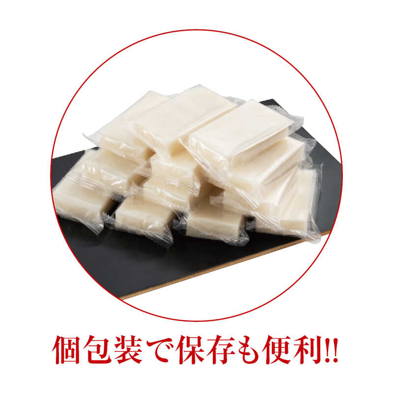 魚沼産の「こがねもち米」を原料に使い、熟練した職人が丁寧に仕上げた「杵つき手のしもち」。コシの強さとなめらかさが際立つ、昔ながらのおいしさです。
