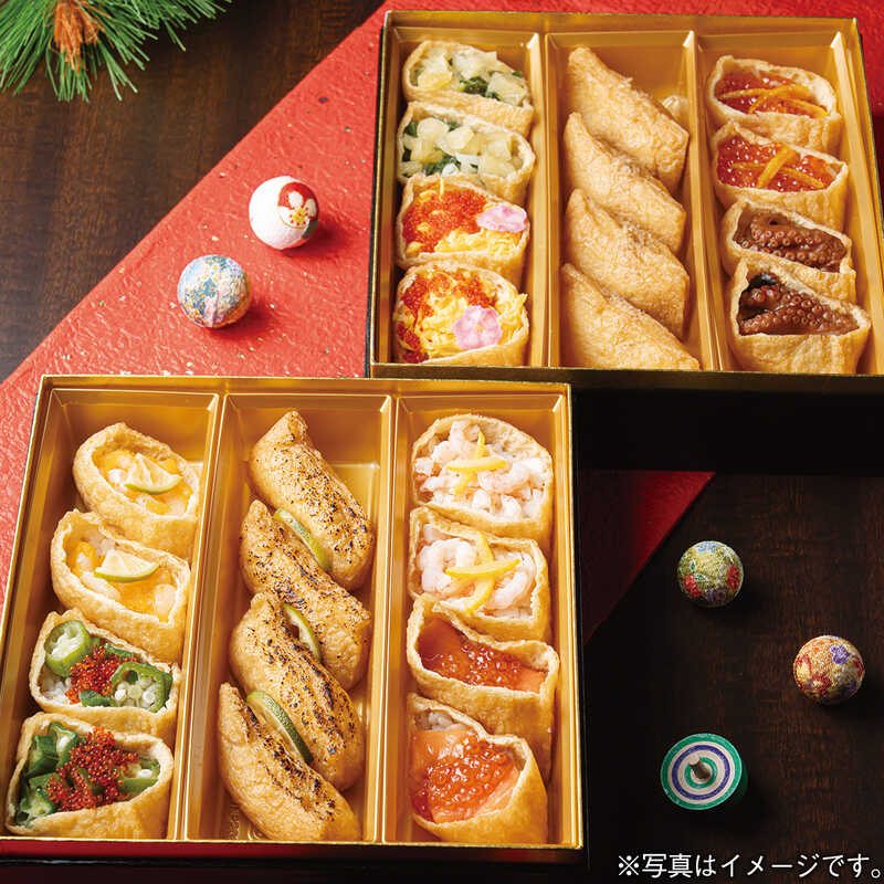一の重:数の子いなり、ちらしいなり、いくらいなり、タコのいなり 各2個、プレーンいなり4個