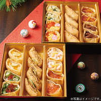※諸事情により献立内容、品目数、重箱サイズ、材質が多少変更になる場合もございます。あらかじめご了承ください。