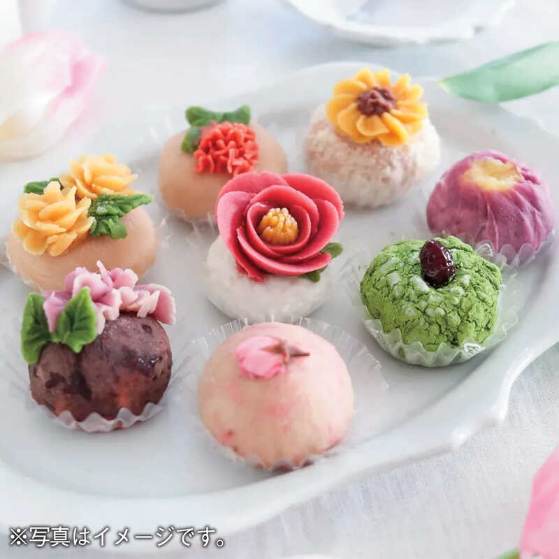 おはぎ8個入り(紅つばき、向日葵とアーモンド、吉野の山桜、木香薔薇とマンゴー、奈良のお煎茶黒豆、金木犀といちじく、春日の藤、お芋の巾着絞り)×各1