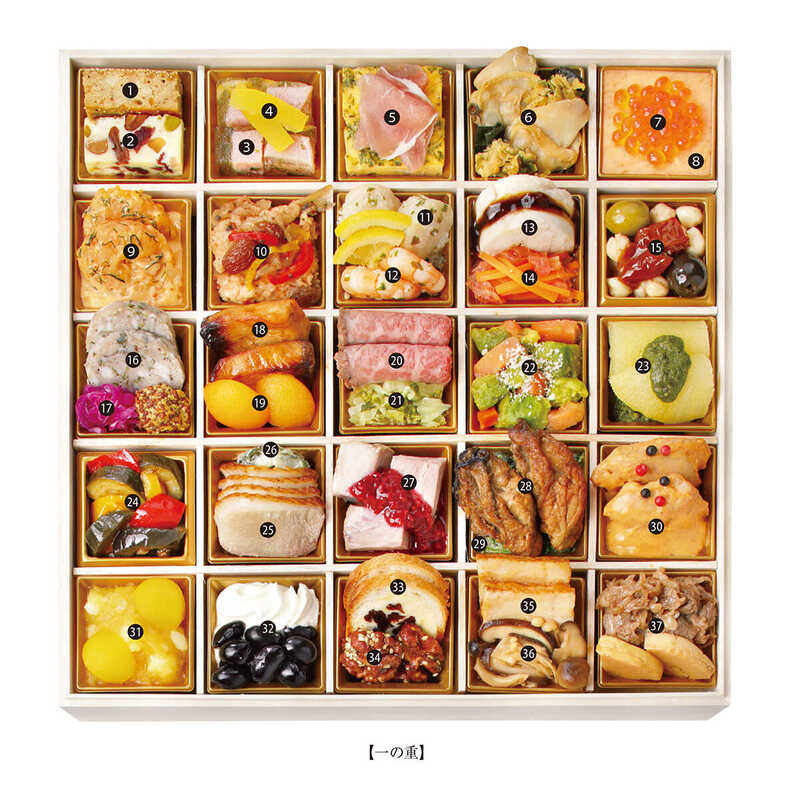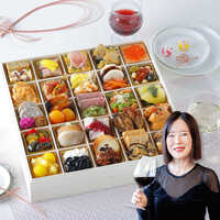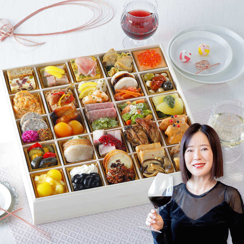 SNSで絶大な人気を誇るソムリエ料理家、石橋絵理さんが初監修。“ワインとのマリアージュ”をテーマに、料理とワインの最高の出会いを追求したおせちです。「いつも食べているものをおせちに入れたい」という石橋さんの想いから誕生した、セロリなどと一緒に味わうローストビーフ、和と洋が調和した数の子のジェノベーゼソースなど、驚きと楽しさあふれる全37品がぎっしり!「クラッカーやバゲットに合わせたりして、プチアレンジも」と、楽しみ方はあなた次第です。