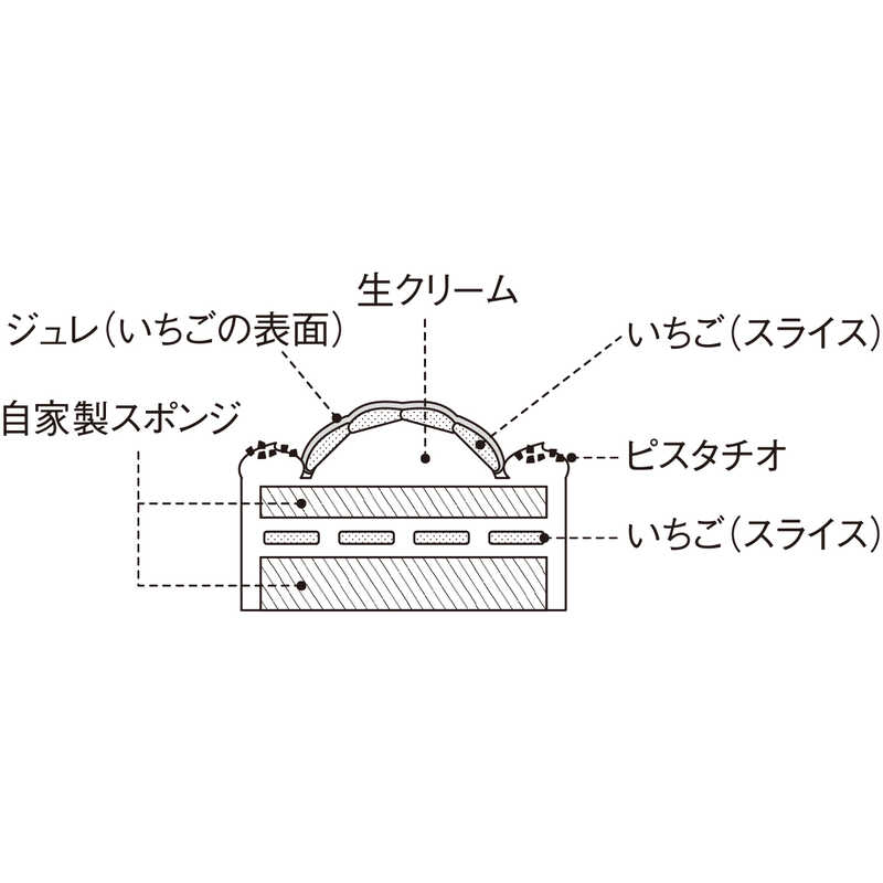 ふんわりとした自家製スポンジに、いちごと北海道産生クリームをふんだんに飾りました。ピスタチオのトッピングで、デコレーションにも食感にもアクセントをつけています。