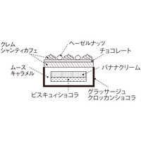 濃厚なショコラの生地と、キャラメルムースのとろける口どけにこだわったクリスマスケーキ。バナナを加えることでさらにチョコレートの風味を引き立てました。アートなデコレーションも印象的。