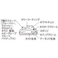いろとりどりのフルーツを使った華やかなタルトケーキです。アーモンド生地のタルトに2種のクリームとスポンジを重ね、7種のフルーツを盛り付けました。