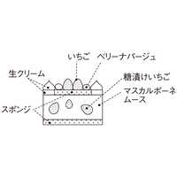 マスカルポーネにクリームチーズを合わせたコク深くミルク感豊かなフロマージュムースと、いちごの甘酸っぱさが口の中でなめらかに溶け合います。ムースの中にも糖漬けいちごを加えて、バランスよく仕上げました。