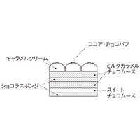 コクのあるスイートチョコムース、ほろ苦いカラメルミルクムースを重ねて、天面にはなめらかでほの甘いキャラメルクリームをたっぷり絞りました。中に忍ばせた軽快なチョコパフの食感と一緒にお楽しみください。