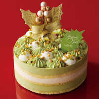 ムースとクリーム、それぞれに2種類のピスタチオペーストを贅沢に使用。まろやかなバニラホワイトチョコムースとミルキーな生クリーム、甘酸っぱいグリオットジャムが、ピスタチオと甘美なハーモニーを奏でます。