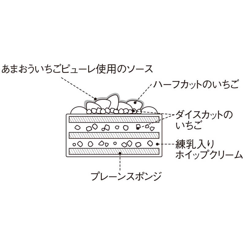 ふんわりとしたスポンジに、たっぷりとホイップクリームをデコレーション。いちごをごろっとトッピングして、クリームのコクと爽やかないちごの甘みを引き立てました。