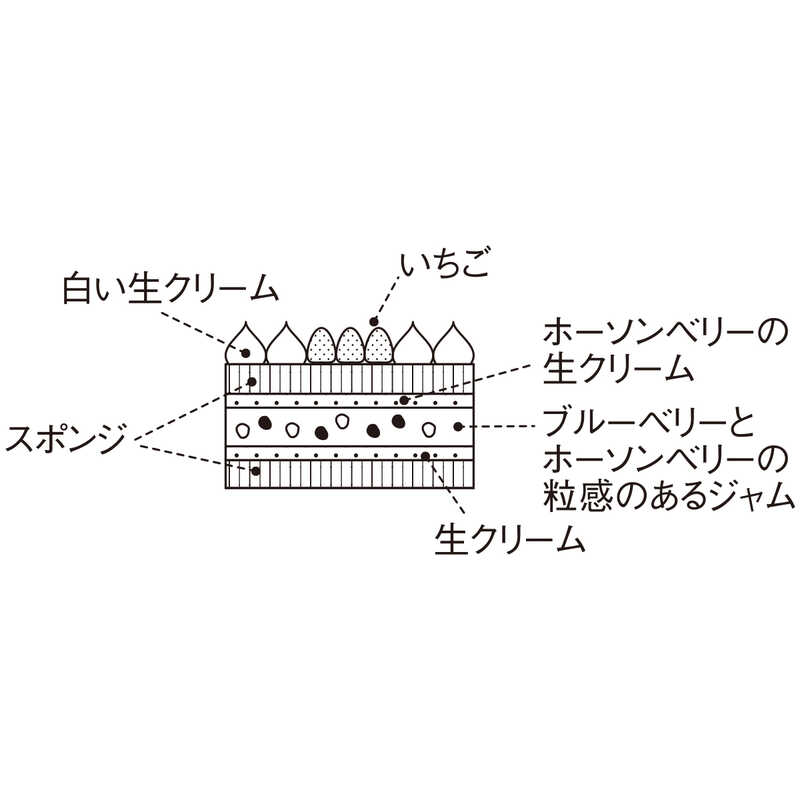 ふわふわのきめ細かいスポンジにもコクのある生クリームにも、ホーソンベリーを惜しみなく使いました。ブルーベリーとホーソンベリーの粒感のあるジャムを忍ばせて、食感のアクセントに。