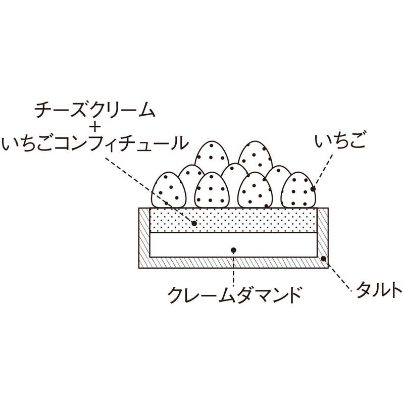 長崎県平戸島産の完熟いちごが贅沢に味わえる人気のタルト。中に忍ばせたチーズムースクリームに、いちごのコンフィチュールを合わせることで、甘酸っぱさとコクのバランスが絶妙なおいしさに。