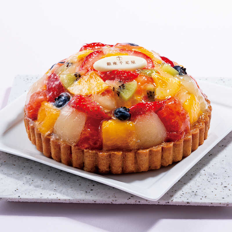 サクッと焼きあげたアーモンドプードル入りのタルト生地に、カスタード風味のクリームと、マンゴーやグレープフルーツ、洋梨、いちごなど、色とりどりのフルーツをふんだんにトッピングしました。