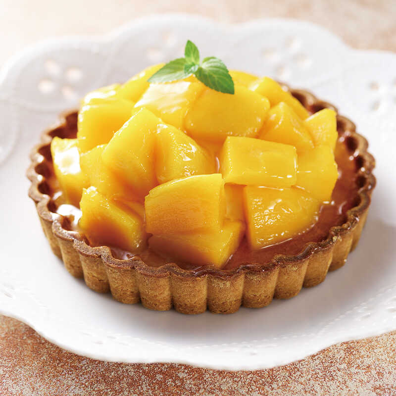 〈銀座千疋屋〉が選りすぐったフレッシュなマンゴーを贅沢に使用。とろっとやわらかな果肉と甘さ控えめのなめらかなカスタード風クリームが調和し、トロピカルテイストをご満喫いただけます。