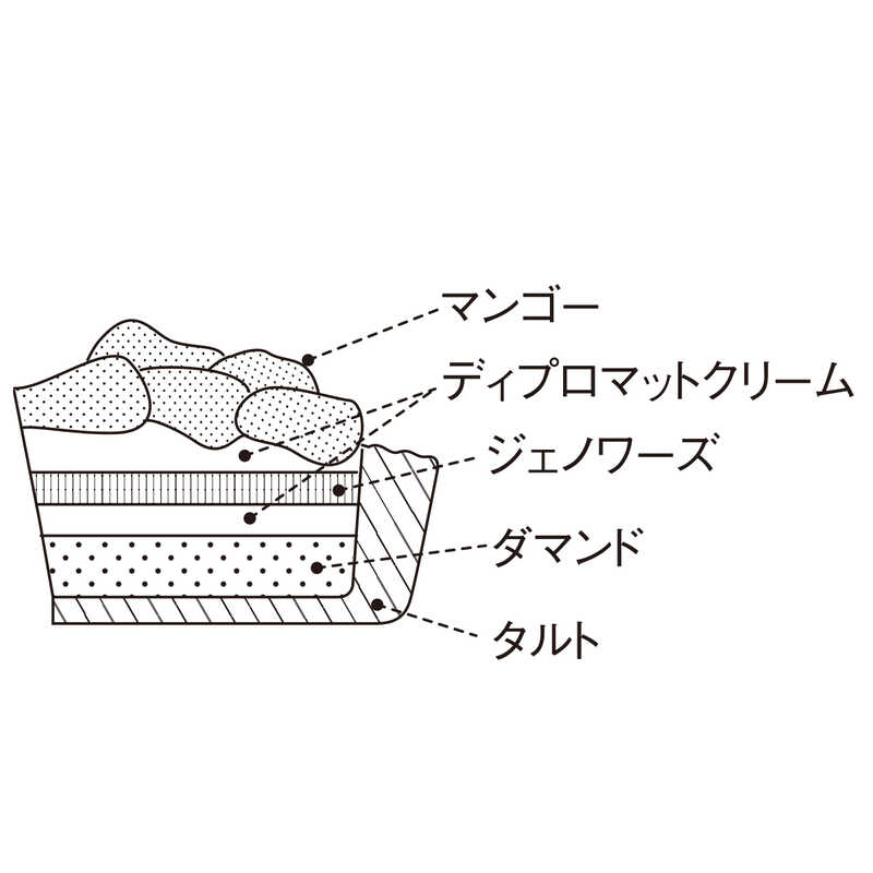 〈銀座千疋屋〉が選りすぐったフレッシュなマンゴーを贅沢に使用。とろっとやわらかな果肉と甘さ控えめのなめらかなカスタード風クリームが調和し、トロピカルテイストをご満喫いただけます。