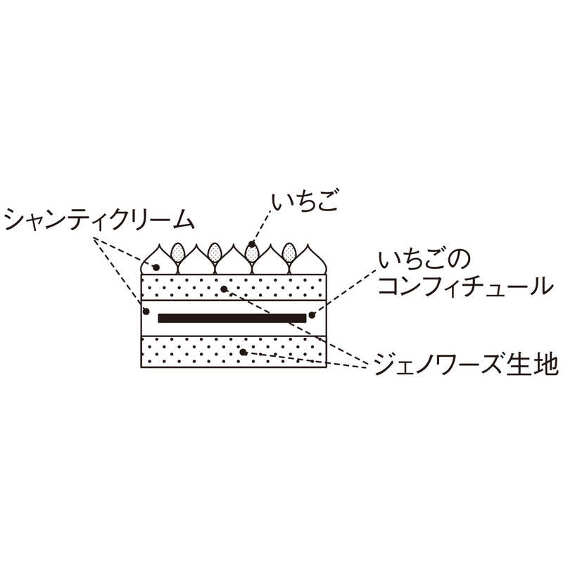 ふわふわのジェノワーズ生地に、いちごのコンフィチュールとオリジナルブレンドのシャンティクリームをふんだんにサンド。ケーキの上にもいちごを飾り付けた、いちごがたっぷりのショートケーキです。