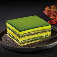 京都の老舗茶舗が、アーモンド生地とバタークリーム、チョコレートを重ねたフランス菓子「オペラ」を、宇治抹茶で贅沢に仕上げました。コクのある生地と濃厚な抹茶クリームのハーモニーが見事。ほろ苦い抹茶の風味が口の中で広がります。