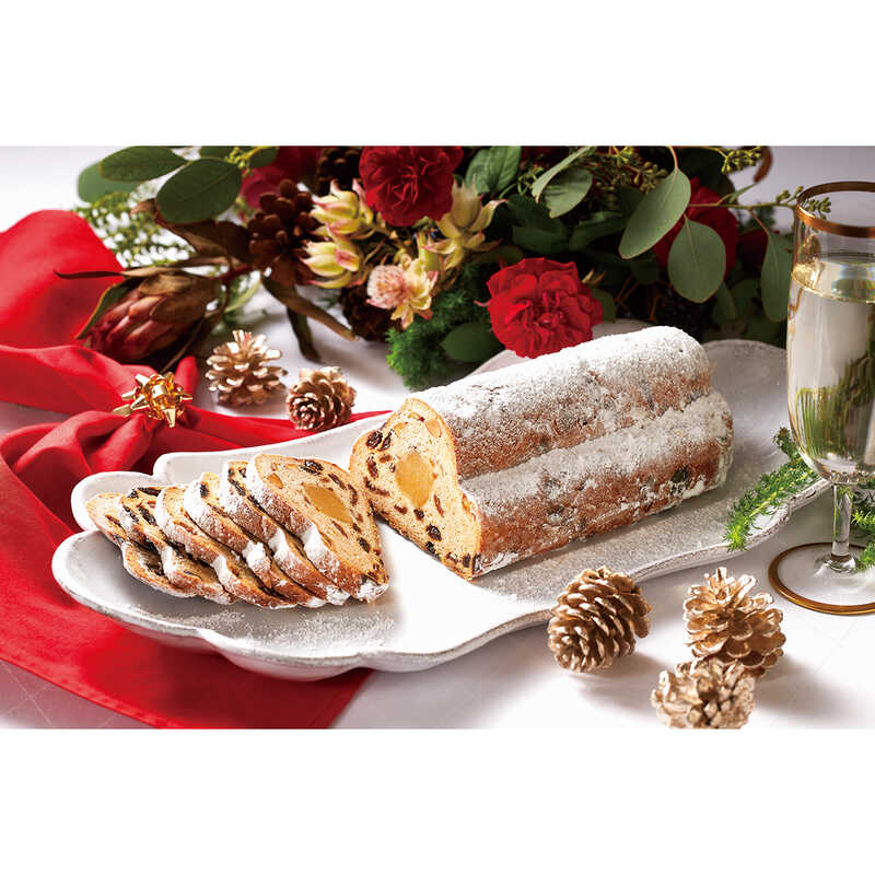 洋酒漬けのドライフルーツがぎっしり詰まったドイツの伝統菓子。帝国ホテルのパン職人が作る「シュトレン」は、生地の中心にアーモンドプードルを練り込んだコクのあるマジパンが詰められており、ドライフルーツとのハーモニーも格別です。