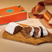 オリジナルのシロップ漬けドライフルーツを練り込んだ特製シュトーレン。金柑や柚子などの柑橘系のフルーツとカカオの風味が日ごとになじみ深みのある味わいに。クリスマスを待ちながら、少しずつスライスしてお楽しみください。