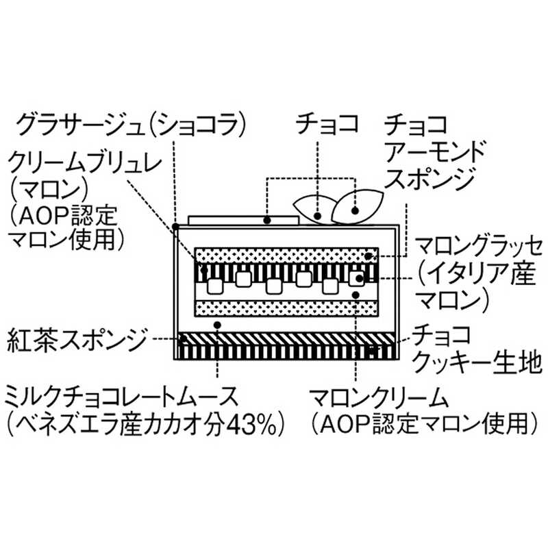 ベルギー王室御用達のチョコレートブランド<ヴィタメール>。フランス産AOPマロンのペーストを使用したクリームブリュレとマロンクリームを、ベネズエラ産カカオのミルクチョコレートムースにとじ込め、紅茶が香るスポンジに重ねました。