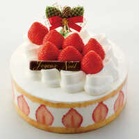 口どけなめらかなクリームとスポンジに苺をサンドした、クリスマス限定デザインのデコレーションケーキです。