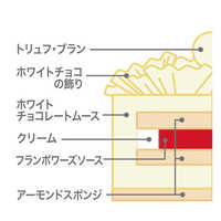ホワイトチョコレートムースの繊細な味わいと、フランボワーズソースの爽やかな酸味。ホワイトチョコの飾りで華やかに仕上げました。