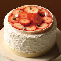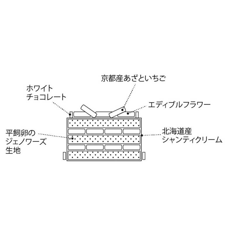 ほどよい甘酸っぱさが特徴の京都産のあざといちごをトッピングしています。ふっくらと焼き上げたスポンジには、国産小麦と平飼い卵を使用し、濃厚なシャンティクリームで優しく包みました。シンプルながらも上質で味わい深く仕上げています。