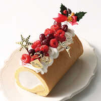 ふんわりと焼き上げた生地で、バニラビーンズを合わせた優しい味わいのクリームを一巻き。仕上げに赤い果実やヒイラギでデコレーション。