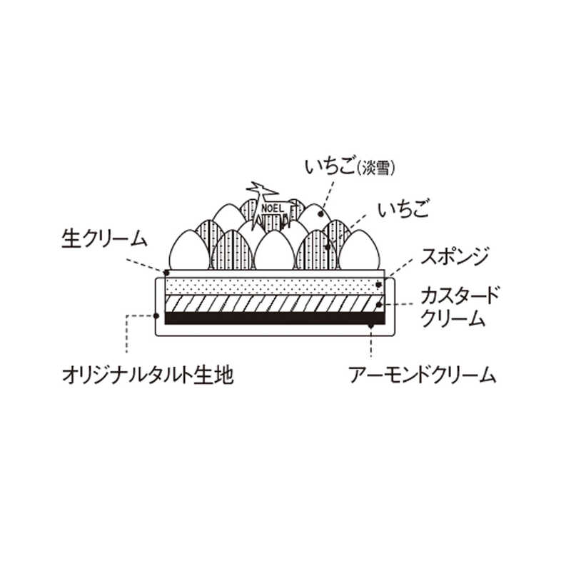 赤と白のコントラストが美しい苺のクリスマスだけのスペシャルタルト。香ばしいタルト生地にアーモンドクリーム、カスタードクリーム、シャンティクリームをシンプルに合わせました。淡雪は兵庫県の淡路島で生産されたイチゴを使用しています。