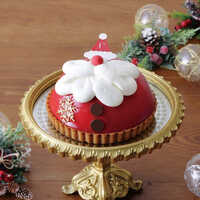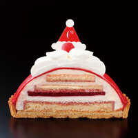 まろやかな甘さのマスカルポーネムース、甘酸っぱいベリーのシロップとジュレの相性が抜群です。真っ赤なグラサージュをかけ、シャンティクリームの髭でサンタクロースをデザインしました。