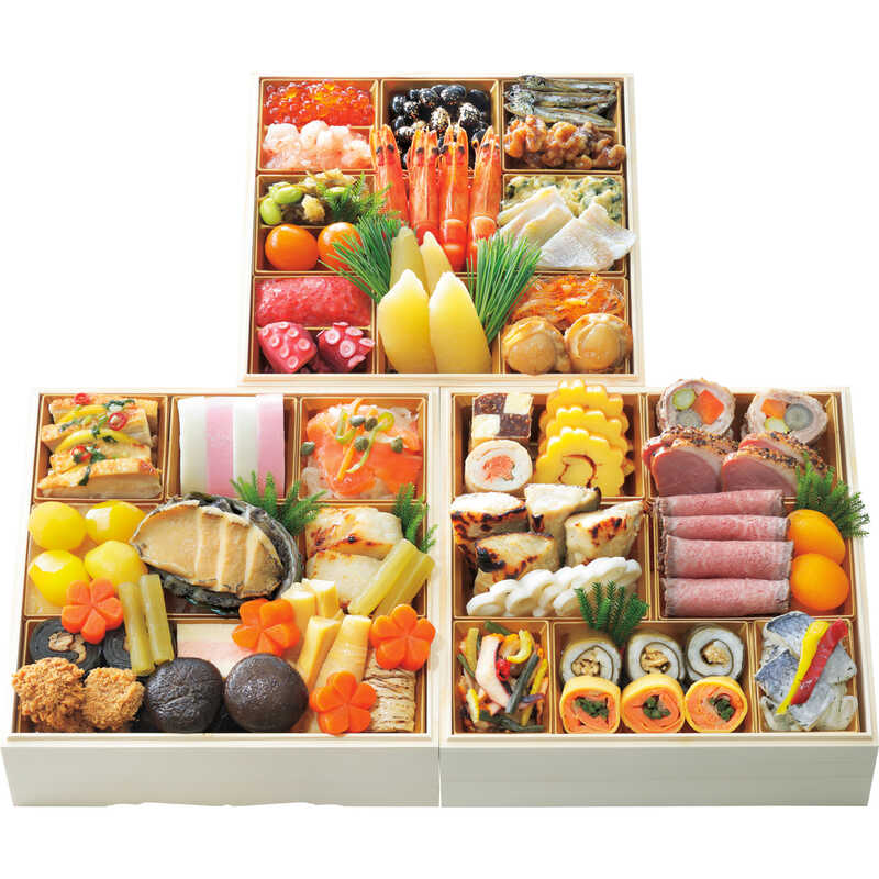 ※諸事情により献立内容、品目数、重箱サイズ、材質が多少変更になる場合もございます。あらかじめご了承ください。