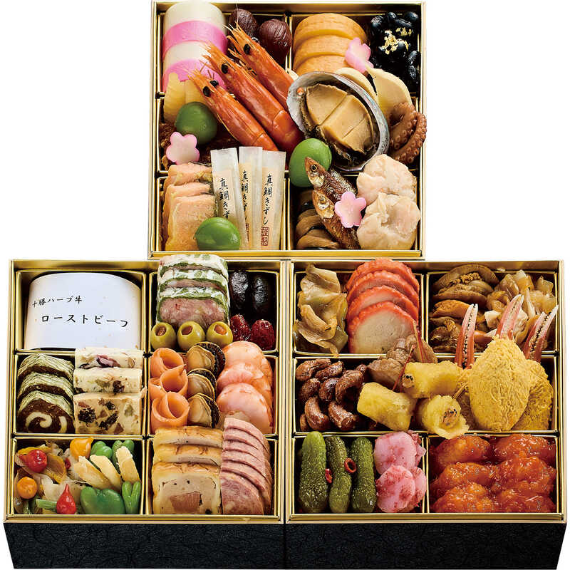 京王プラザホテル札幌総料理長が監修をした新年を寿ぐ和・洋・中選りすぐりのおせちです。