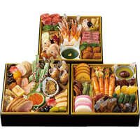 伝統的な日本のお正月料理を盛り付けた壱の重、弐の重、豪華な食材をふんだんに使った参の重。51種類のお品を美しく詰め込んだ和洋三段重をお届けいたします。
