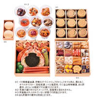 ※諸事情により献立内容、品目数、重箱サイズ、材質が多少変更になる場合もございます。あらかじめご了承ください。
