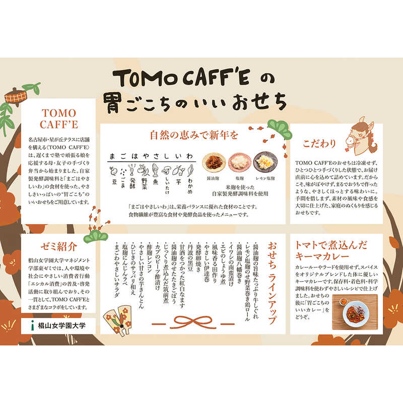 ※諸事情により献立内容、品目数、重箱サイズ、材質が多少変更になる場合もございます。あらかじめご了承ください。